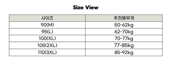 90(M),95(L),100(XL),105(2XL),110(3XL)