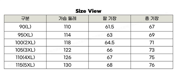 90(L),95(XL),100(2XL),105(3XL),110(4XL),115(5XL)